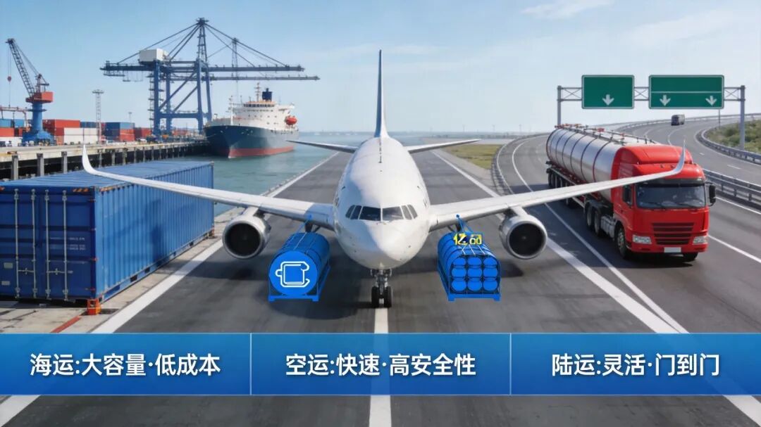 海运(适用IMDG规则) 适合大批量、长距离运输,成本相对较低。需要提供MSDS、危包证等文件,集装箱必须符合危险品装载规范。